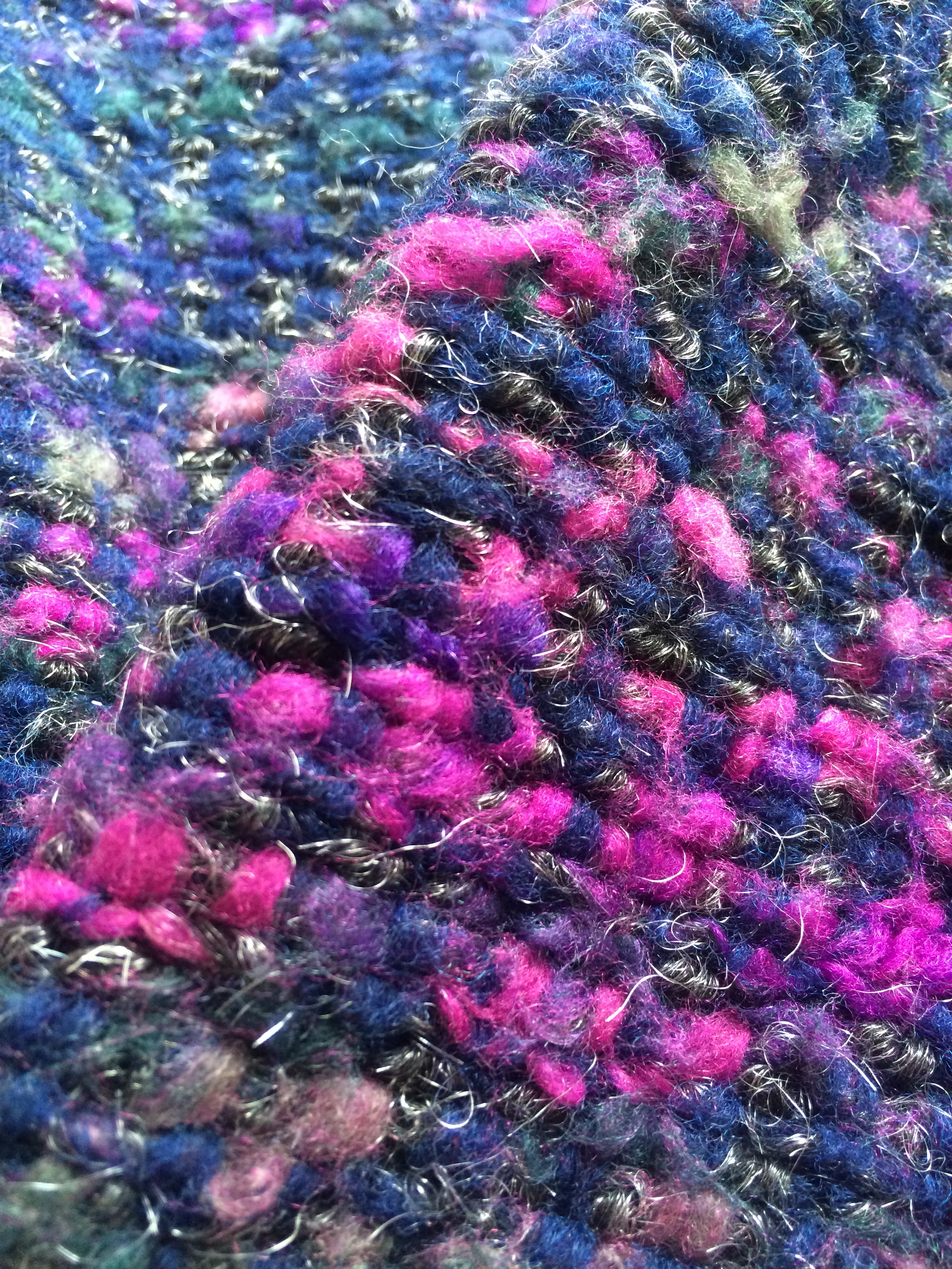 何色もの糸が使われていますが、強くなりすぎないようにグレーを混ぜたようなダスティカラーが混じっています。