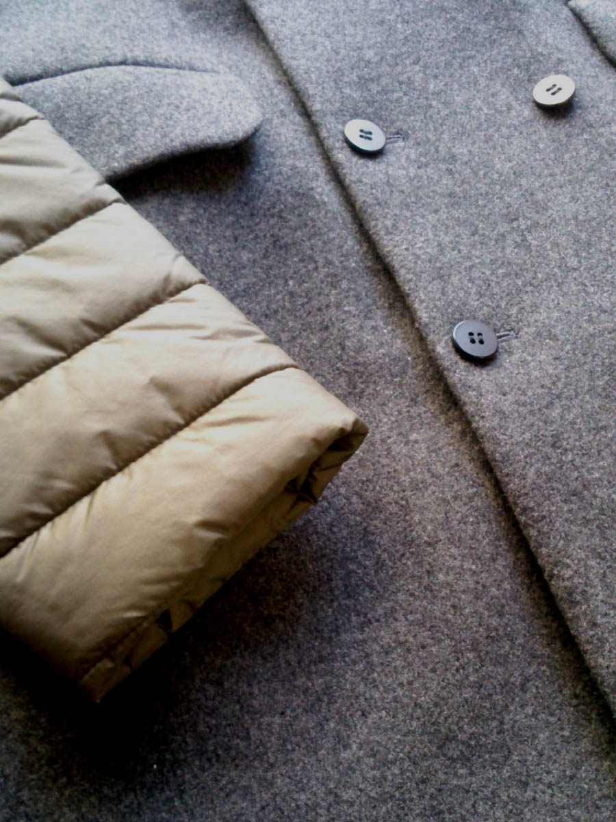 カジュアルなイメージのナイロンキルティングと、上品なメルトン生地という