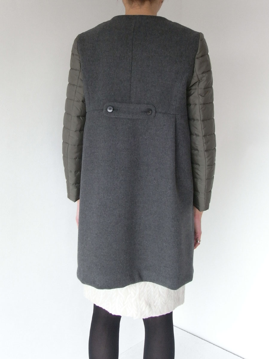 印象の異なる素材を組み合わせた、デザイン性の高いコートです。