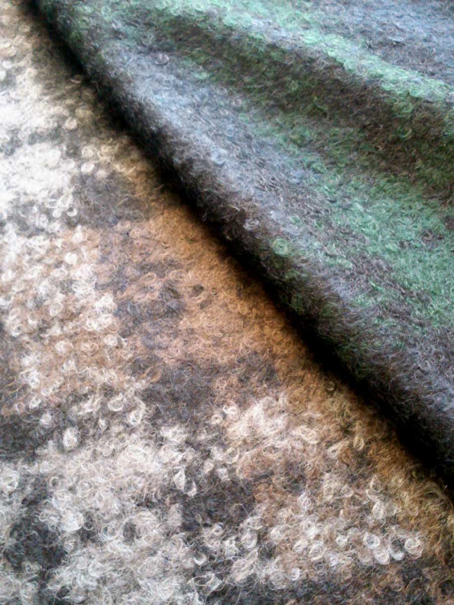 表面にウールのループをつくり、さらにそれを圧縮することで生地に表情を持たせています。