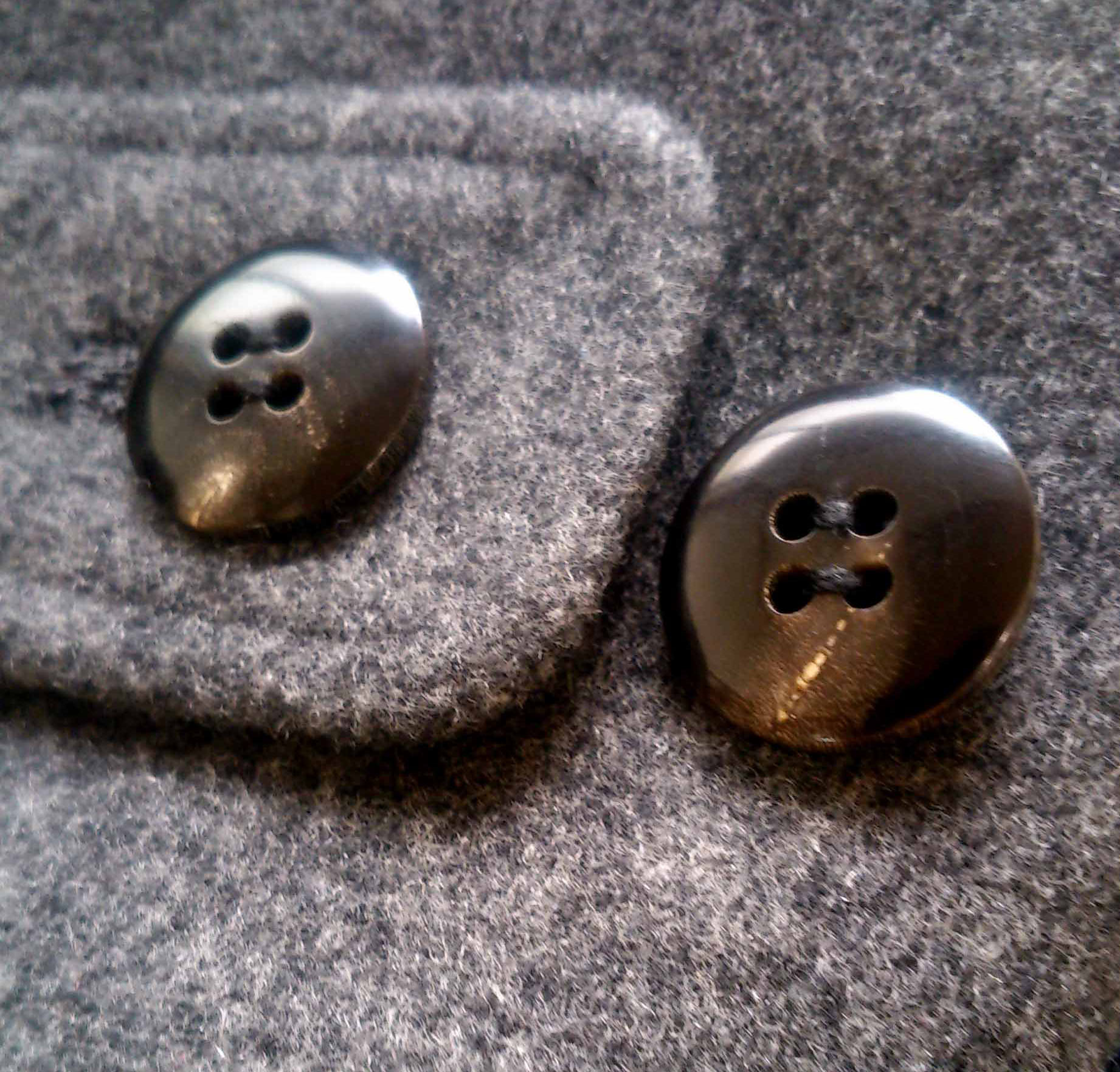 本水牛の角を切り出して作っているボタンは、プラスチックにはない、奥深い光沢があります。