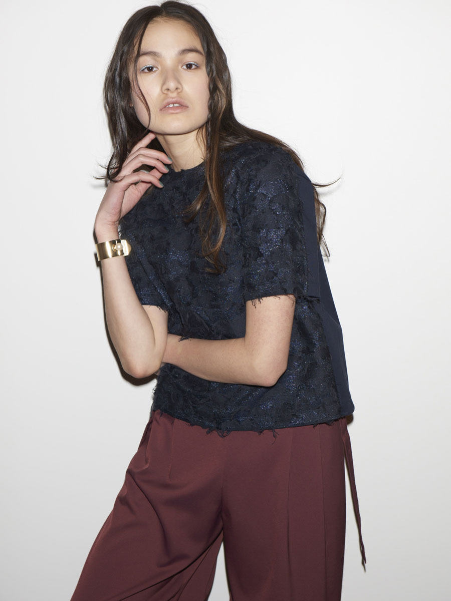 一大産地の「兵庫県西脇市」で作っている素材で綿糸にラメ糸を混ぜ、複雑なカモフラージュ柄をジャカードで表現しています。