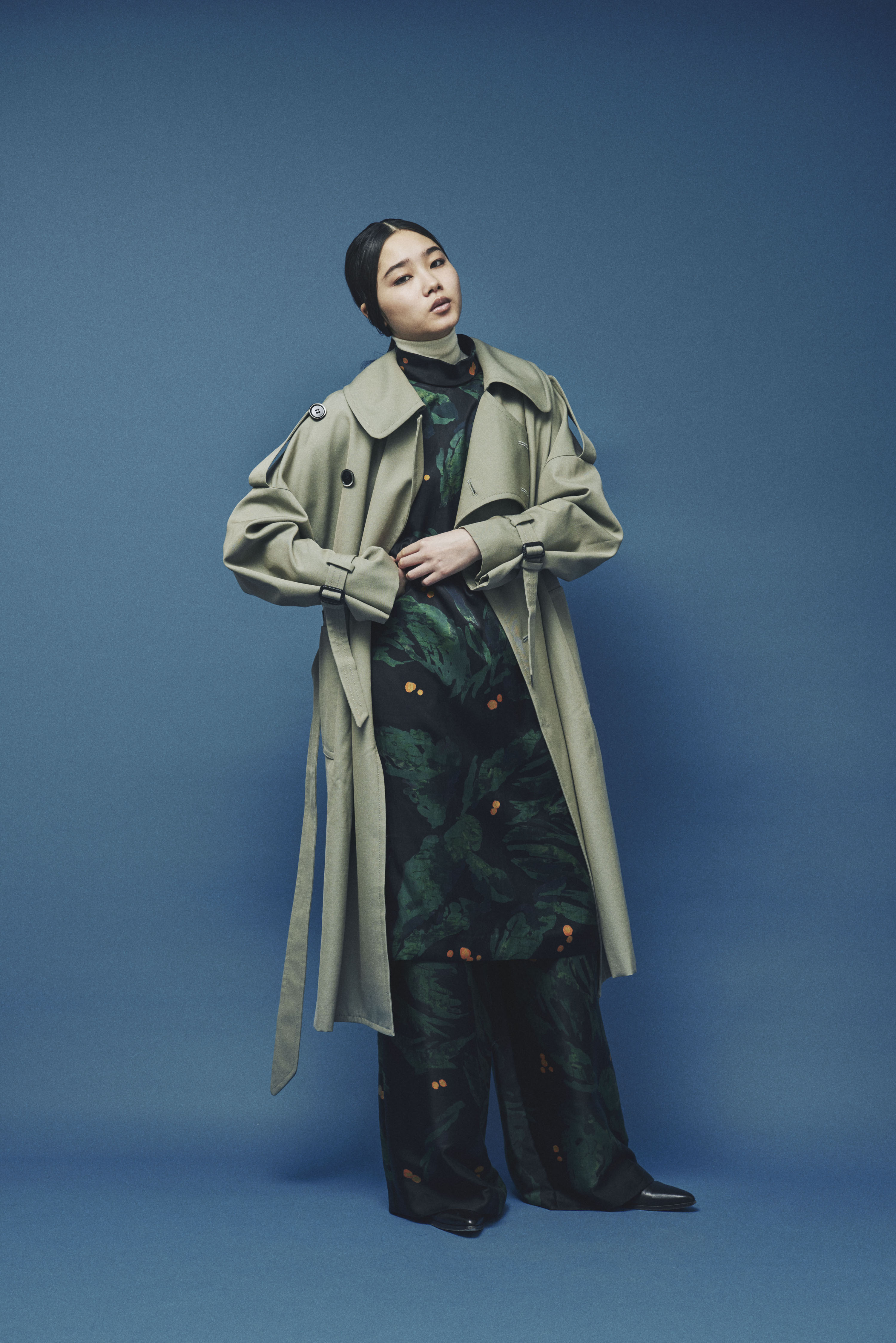 シャンブレーウール ビッグカラー トレンチコート